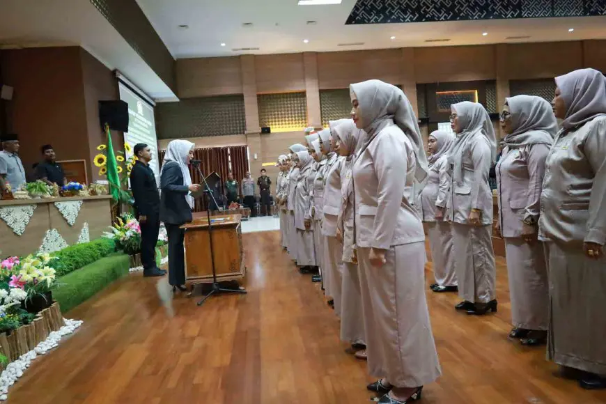 Ketua Ayu Dyan Liliana Sari Wiryono mengukuhkan pengurus Gatriwara DPRD Barito Kuala dalam rangkaian rapat paripurna, Rabu (19/11/2025). Foto: Prokopim Batola