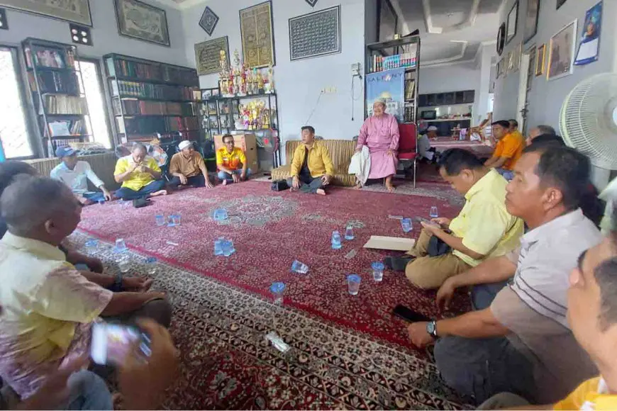 Sejumlah kader DPD Partai Golkar Batola sowan ke kediaman Al Alimul Fadhil KH Asqalani atau Guru Iwat menjelang pelaksanaan Musda XI. Foto: Kabar Kalsel