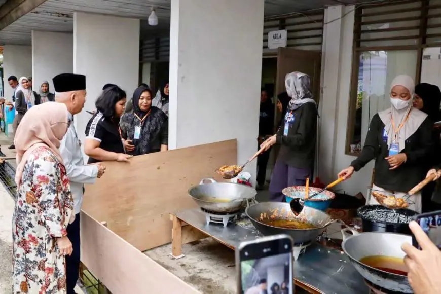 Tidak hanya meninjau fasilitas, Muhidin dan Fathul Jannah juga mencicipi langsung sajian yang disiapkan secara swadaya oleh para pegawai.