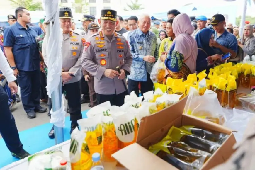 Kapolri Jenderal Listyo Sigit Prabowo melakukan inspeksi Gerakan Pangan Murah (GPM) dan bakti kesehatan di Mako Polda Kalimantan Selatan. Foto: Divisi Humas Polri