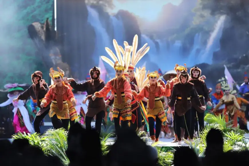 Selanjutnya ditampilkan tari kolosal berjudul Meratus Jiwanya Borneo yang dipersembahkan Dinas Pendidikan dan Kebudayaan (Disdikbud) UPTD Taman Budaya Kalsel.