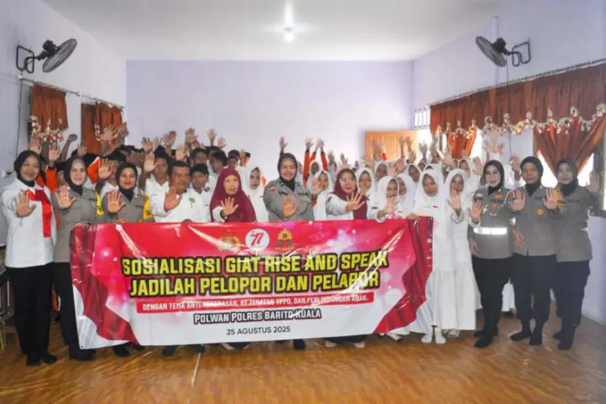 Memitigasi kasus perundungan (bullying) terhadap anak, Polwan dan Unit Perlindungan Perempuan Anak (PPA) Sat Reskrim Polres Barito Kuala mengampanyekan Rise and Speak: Jadilah Pelopor dan Pelapor.